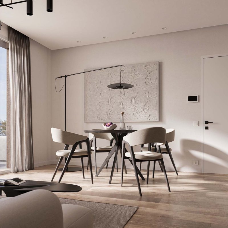 Gli appartamenti, dai bilocali funzionali ai trilocali e quadrilocali con ampie zone giorno, includono terrazzi o giardini privati. Ogni tipologia è progettata con attenzione alle proporzioni, alla luce e al comfort.